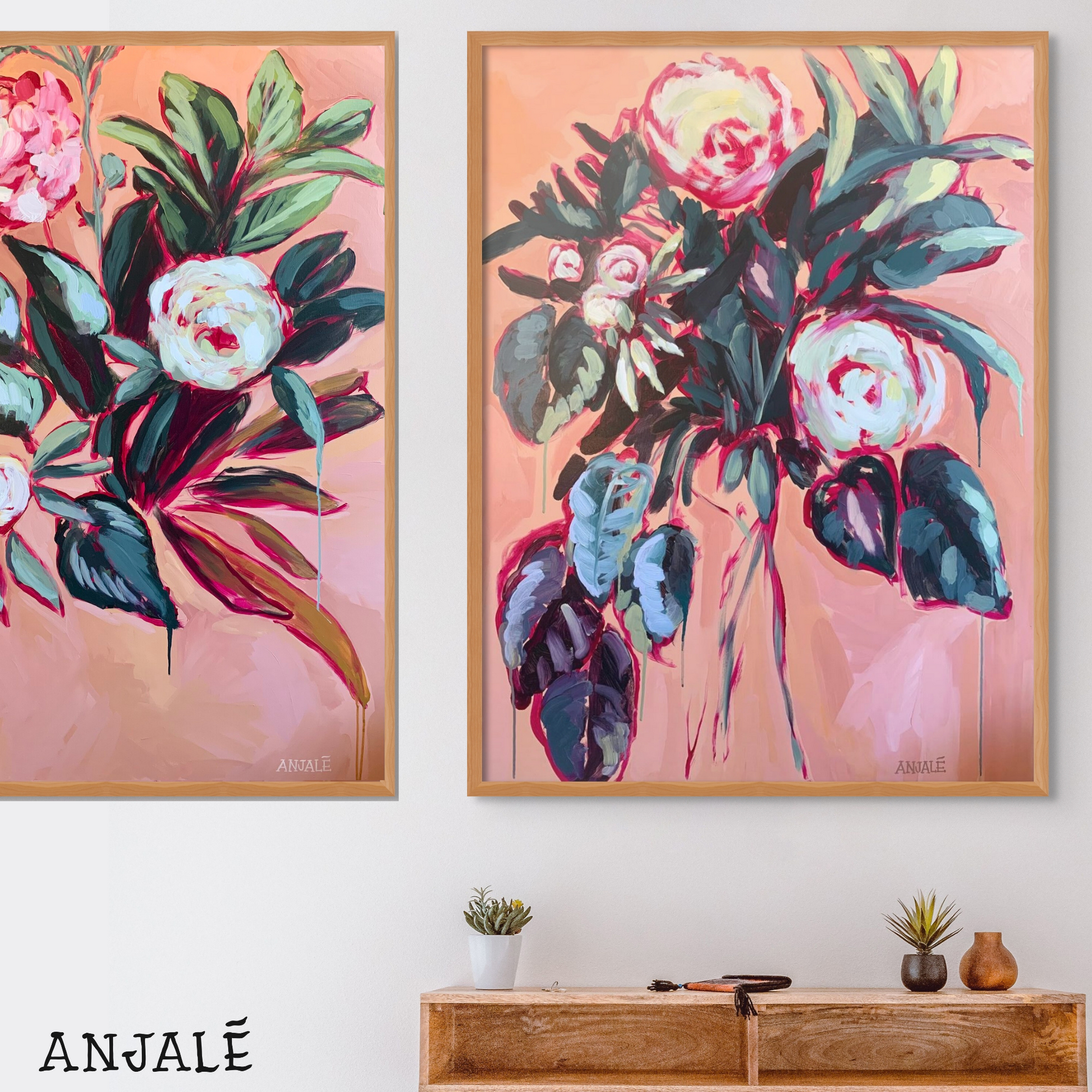 This piece is part of the Flower Bombs series. Each work is painted from life using expressive, open brushstrokes. Anjalé’s intention in this series is to capture the energy and flow of the florals through gesture and color, turning off the mind during the painting process and allowing the eye and heart to move the hand.